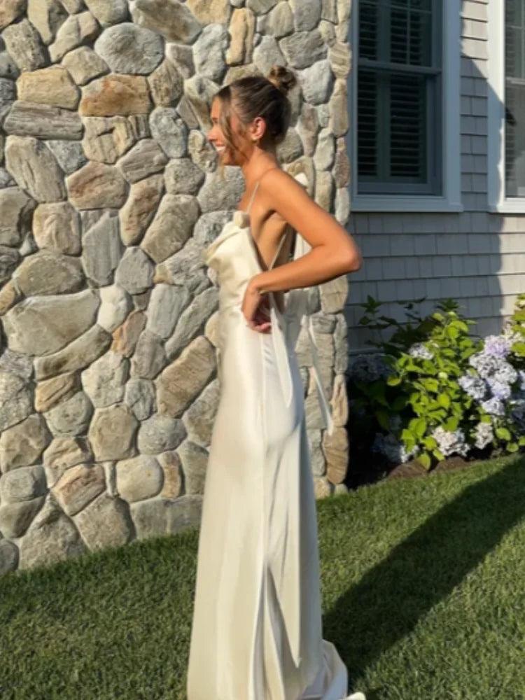 Women's Satin Halter Maxi Dress – Backless, High Waist, Elegant Evening Gown