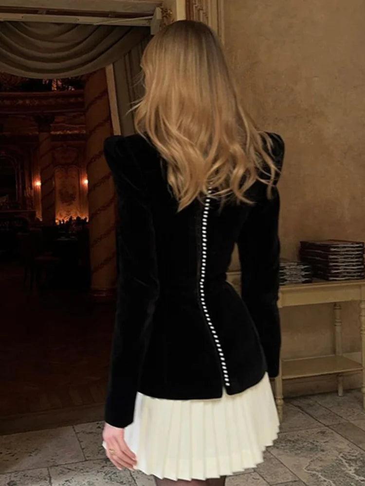 Women's Velvet Patchwork 2-Piece Dress – Long Sleeve, Square Neck, Ruffled Mini Skirt