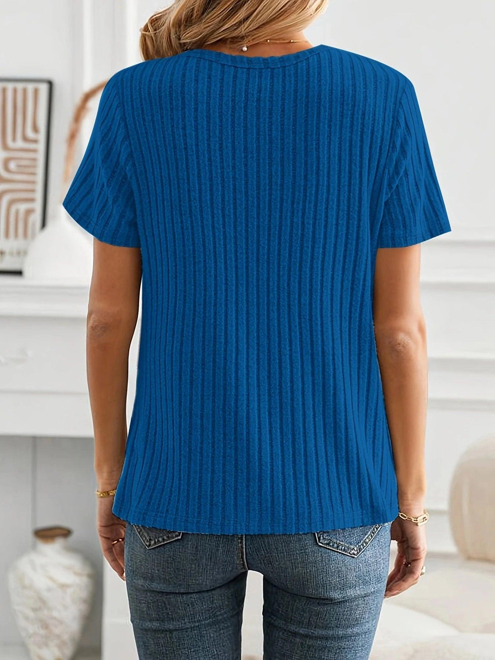 Women's Fashionable V-Neck Button-Up Top with Pit Stripes