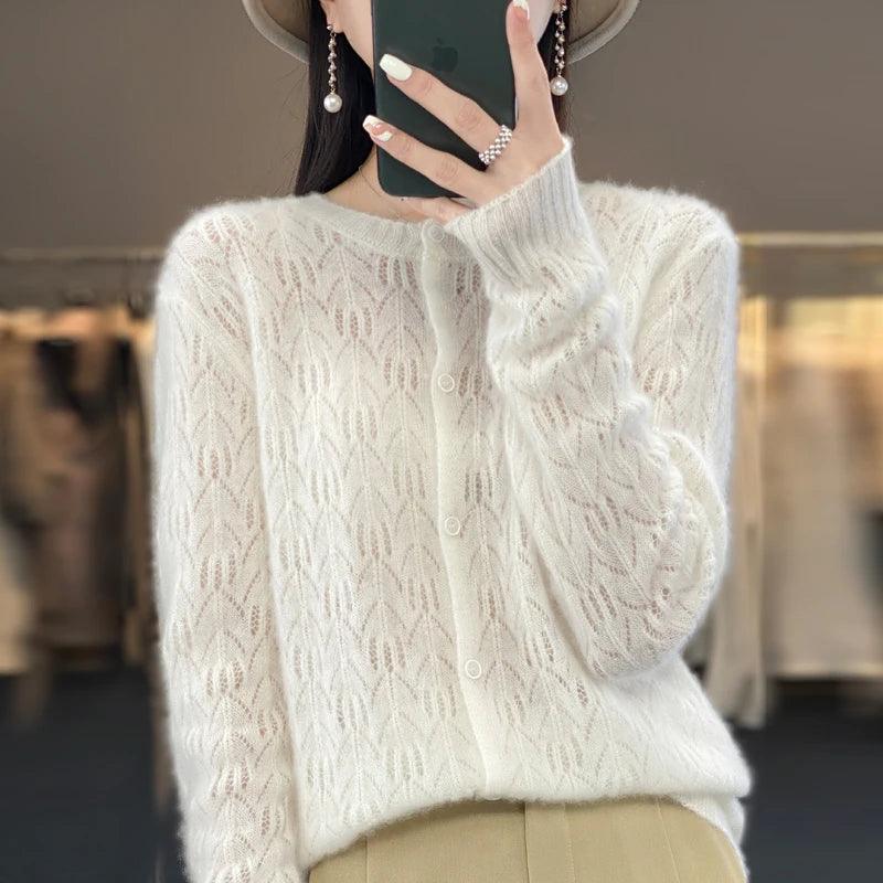 Women’s O-Neck 100% Merino Wool Cashmere Cardigan