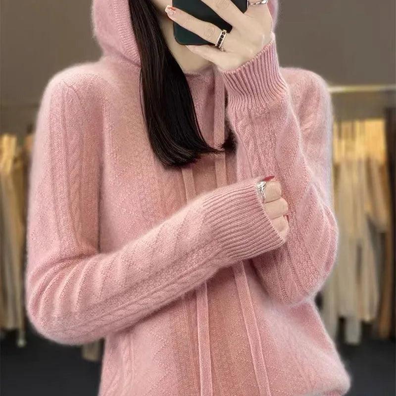 Knitted Hooded Sweater – Women's Casual Wool Long-Sleeve Top